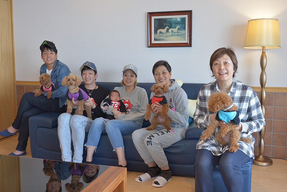 「初めて利用したのは約20年前。そのとき赤ちゃんだった娘がママになり、今日が孫の旅行デビューとなりました」。これまで子供たちの成長と共にプール、バーベキュー、テニス、サイクリング、マリンスポーツ、花火大会とここで過ごした思い出が蘇るというN様ご一家。この日は家族4世代に加え4匹のワンちゃんも一緒。ルームウェアに着替えてソファに座れば「自宅にいるような気分でゆったりしています」と笑顔いっぱい。